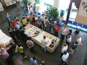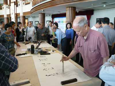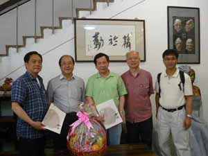 雖 然只有三個星期的時間籌備,17位會友連同親友,一行32人於星期六早上準時出發。為了方便及安全,在香港租了一部49座的冷氣旅遊車,全程接載。皇崗口 岸檢疫嚴謹,三位衛生官員登車,個別量度體溫、檢查填報健康表等,我們精神奕奕,很快通過關口。途中加插了特別節目:馬潤憲副會長講故事,內容令人感慨; 之後,幾位團友興致勃勃地大展歌喉,繞樑三日。抵達廣州瀛州村「在水一方」酒樓,才是早上十一時多。鄉村菜肴另有一番風味:鮮玉米汁、紫芯蕃薯、白烚芋 頭、水煮花生是餐前小吃,跟著的走地雞、炒魚麵、豆腐煲、河石斑、生煎飽等十多碟地道風味菜,津津有味。飽餐一頓後,當地之木雕名家、廣州美術學院教授尹秋生帶領我們參觀瀛州村,首先拜會國畫家曾嶸,參觀了他寬敞雅緻的松風齋,沿著藝術文化村前進,看見小河兩旁,生長了密密的大樹,大樹吊滿了紅紅的果實「蓮霧」,真美!難怪吸引了一些年青的畫家、攝影家寫生及取景。我們就忙著參觀油畫家、國畫家之紫雲堂、德采堂及木雕名家尹秋生和書法篆刻家周樹堅等之工作坊。瀛州村位於廣州大學城旁邊,大學的藝術家遷入一些村屋作為工作室,隨著發展,農地轉型,剩下這條村,逐漸 演變成一條別開生面的藝術村,一些古老的村屋已被拆掉,改建為新穎的樓房,成為藝術家圓夢之鄉。原本在離開前,參觀只有一橋之隔的大學城,可惜小橋未能負 荷我們的旅遊車,唯有待下次。黃昏時趕往佛山,入住金湖酒店,晚餐在酒店貴賓廳。很高興邀請得佛山市書法家李小如、王志敏及羅炳生共膳,前兩位書法家曾經 與本會交流,再見面當然是樂事。飯後各自精彩:逛街、按摩、唱K、夜宵、睡覺......。
